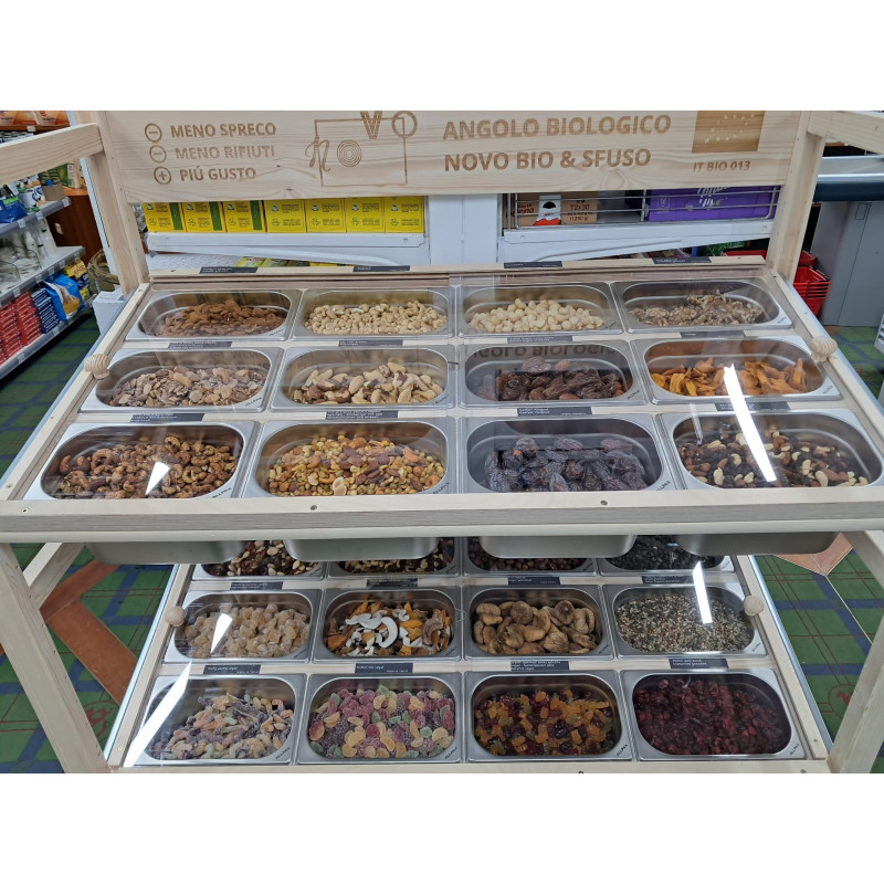 Presentiamo il mobile conforme HACCP, la soluzione perfetta per massimizzare la tua offerta di prodotti sfusi. Con soli 1,2 metri di ingombro, ti consente di esporre e vendere ben 24 prodotti diversi, rendendolo ideale anche per i negozi con spazio limitato o privi di attrezzature dedicate.